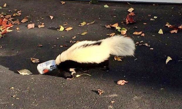 Now I don’t want to laugh at this because I almost feel sorry for the the animal. But in my lifetime I’ve had terrible luck with skunks. In high school my dog got sprayed while I was getting ready for school. Somehow the stink got transferred to me. Long story short I walked into school that day and immediately stunk up the ENTIRE school. When I say entire school, I mean the entire school. Every class I went to I had to sit by an open window. Had to go home after 3 periods because I stunk so bad. I was a freshman. It was traumatizing. So forgive me if I have no sympathy for some stupid skunk being stupid and getting its stupid head stuck in a stupid Miller Lite can.