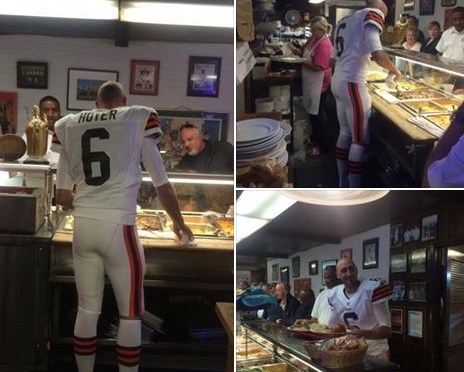 While other players are busy relaxing and recovering from Sunday’s game, Brian Hoyer has turned into a bonafide lunch lady. What a way to spend your off day just slingin mashed potatoes and gravy till your arm falls off. Hey Brian, you better be scooping that mac and cheese with your left arm. We’re gonna need that right arm in a couple weeks vs. the Titans.