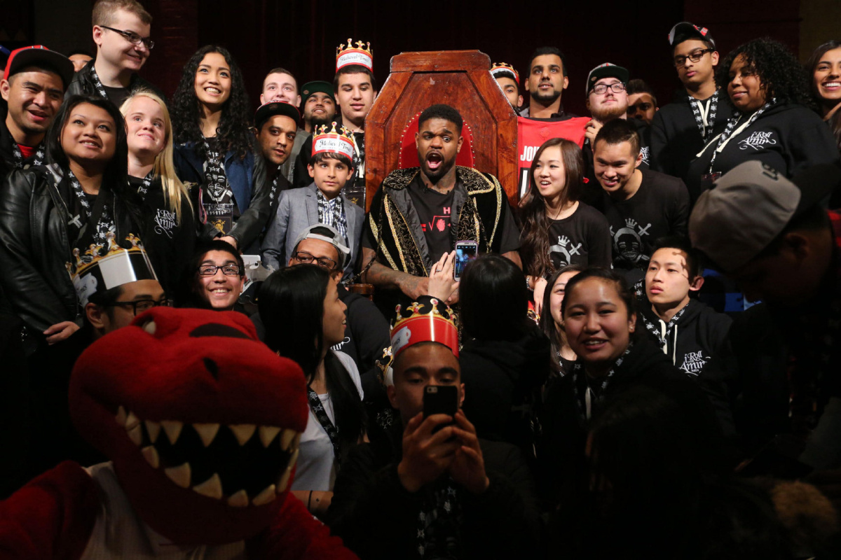 Toronto Raptors Amir Johnson sitting on the throne holds a party at Medieval Times to thank his fans (all round him) this year November 22, 2014 1200 × 800 Opposing Fanbase and Cheerleader Gallery= Toronto Raptors TORONTO, ON – APRIL 10 – Toronto Raptors Amir Johnson sitting on the throne holds a party at Medieval Times to thank his fans (all round him) this year in Toronto on April 10, 2014 Vince Talotta/Toronto Star