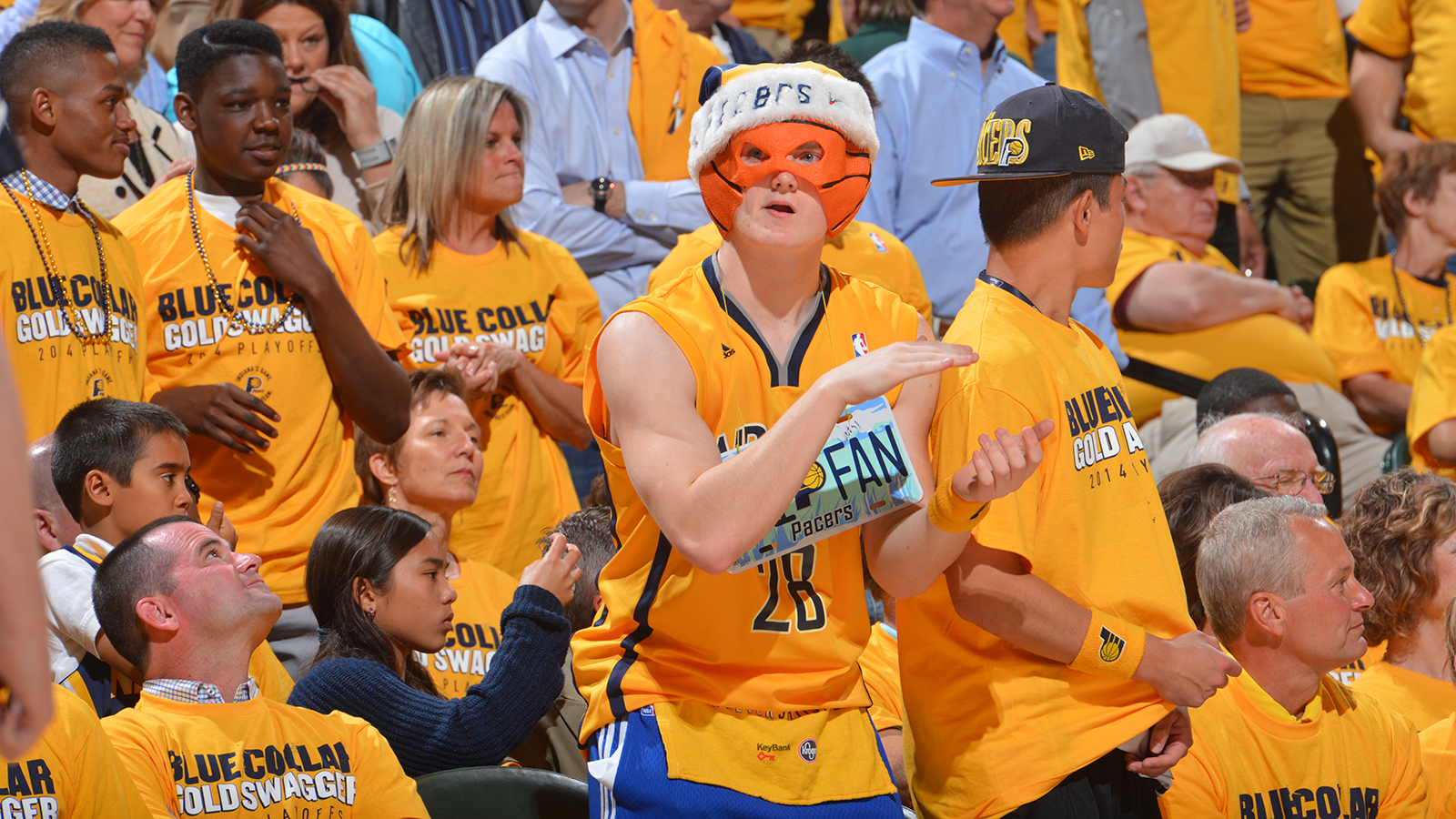 INDIANAPOLIS, IN – APRIL 19: Indiana Pacers fans cheer during Game One of the Eastern Conference Quarterfinals against the Atlanta Hawks during the 2014 NBA Playoffs on April 19, 2014 at Bankers Life Fieldhouse in Indianapolis, Indiana. NOTE TO USER: User expressly acknowledges and agrees that, by downloading and or using this photograph, User is consenting to the terms and conditions of the Getty Images License Agreement. Mandatory Copyright Notice: Copyright 2014 NBAE (Photo by Jesse D. Garrabrant/NBAE via Getty Images)