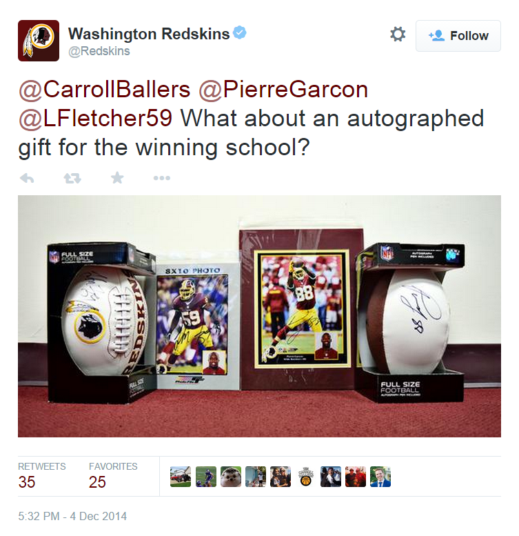 And in probably their best PR move in recent memory, the Redskins chimed in and decided to donate some memorabilia to the winning school. Odds that Dan Snyder approved this? Zero percent. If we’re being honest, whoever is running this account will probably get fired for offering to give away free stuff. Bastard.