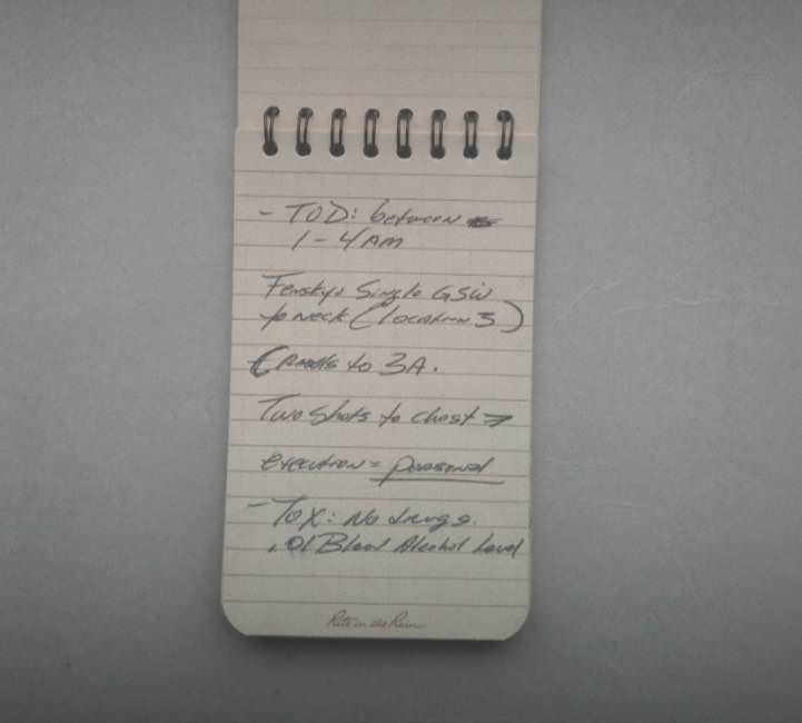 3. Fensky’s 9mm- Police issue. Fired. Recovered 4 ft from body