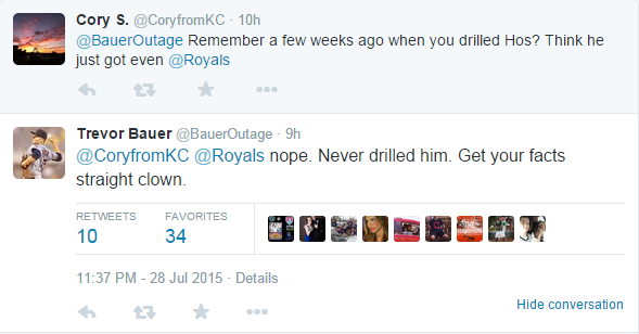 Before last night, Bauer had thrown 12.2 innings against the Royals and hit zero batters.