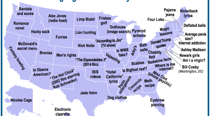 This chart just proves that whatever weird stuff you’re searching on Google (God I hope no one ever sees my search history), there’s someone else searching something just as weird or even weirder. We’ve got some freaks here and that’s what makes us the greatest country in the world.