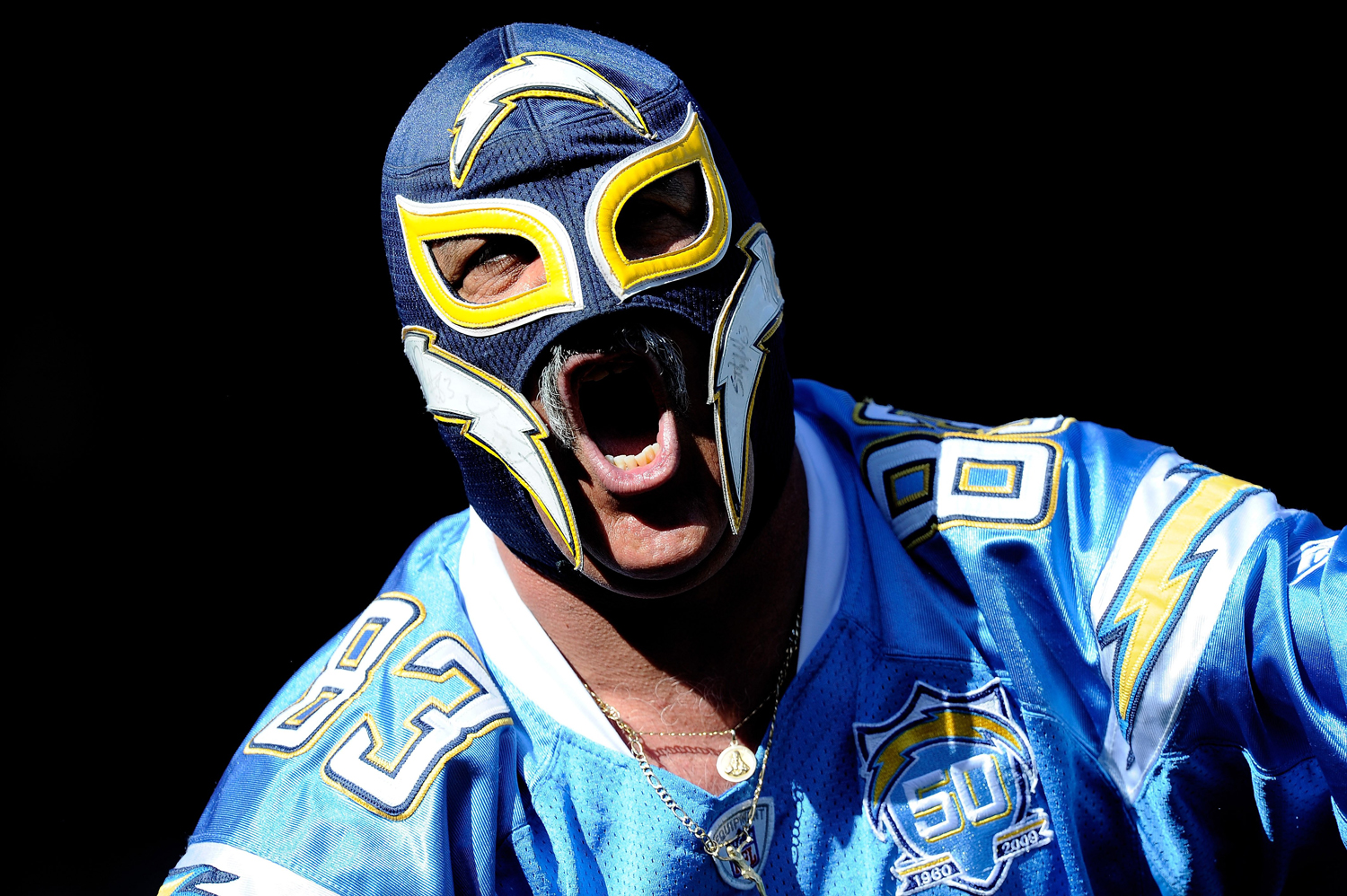 Image: Seattle Seahawks v San Diego Chargers October 3, 2015 1500 × 998 San Diego Chargers Cheerleader And Fanbase Gallery SAN DIEGO, CA – AUGUST 11: A San Diego Chargers fan cheers before the NFL preseason game against the Seattle Seahawks at Qualcomm Stadium on August 11, 2011 in San Diego, California. (Photo by Kevork Djansezian/Getty Images)