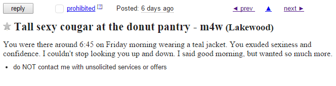 Hey fucker, I’m trying to have a weekly blog feature here. Don’t let the Craigslist posters become self aware.