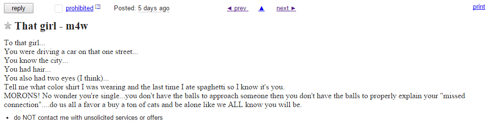 After a 12 day hiatus we’re back with a vengeance this week with our Cleveland Craiglist Missed Connections weekly feature. Searching the depths of Craigslist to bring you the finest missed connections postings from the finest Northeast Ohioans on the Internet. Some posts are looking for love, some are looking to hook up, none of them will work.