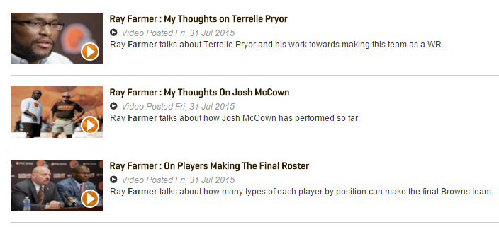 Here’s a snippet of what you get when you search the videos on the Browns website for “Farmer”:
