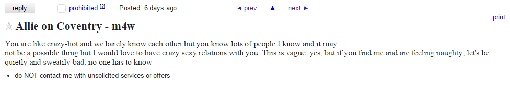 Alright. What the fuck. If you’re going to be weird on Craigslist you should probably turn your location off. Funny thing is, I’m from Willoughby (Hills) and know the area where this took place so there’s a slight chance I know this guy. I question his tactics.