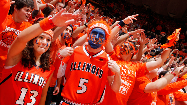 Wisconsin v Illinois November 14, 2015 640 × 360 Illinois Fighting Illini Cheerleader & Fanbase Gallery CHAMPAIGN, IL – JANUARY 22: Illinois Fighting Illini fans cheer during the game against the Wisconsin Badgers at Assembly Hall on January 22, 2012 in Champaign, Illinois. Wisconsin won 67-63. (Photo by Joe Robbins/Getty Images)