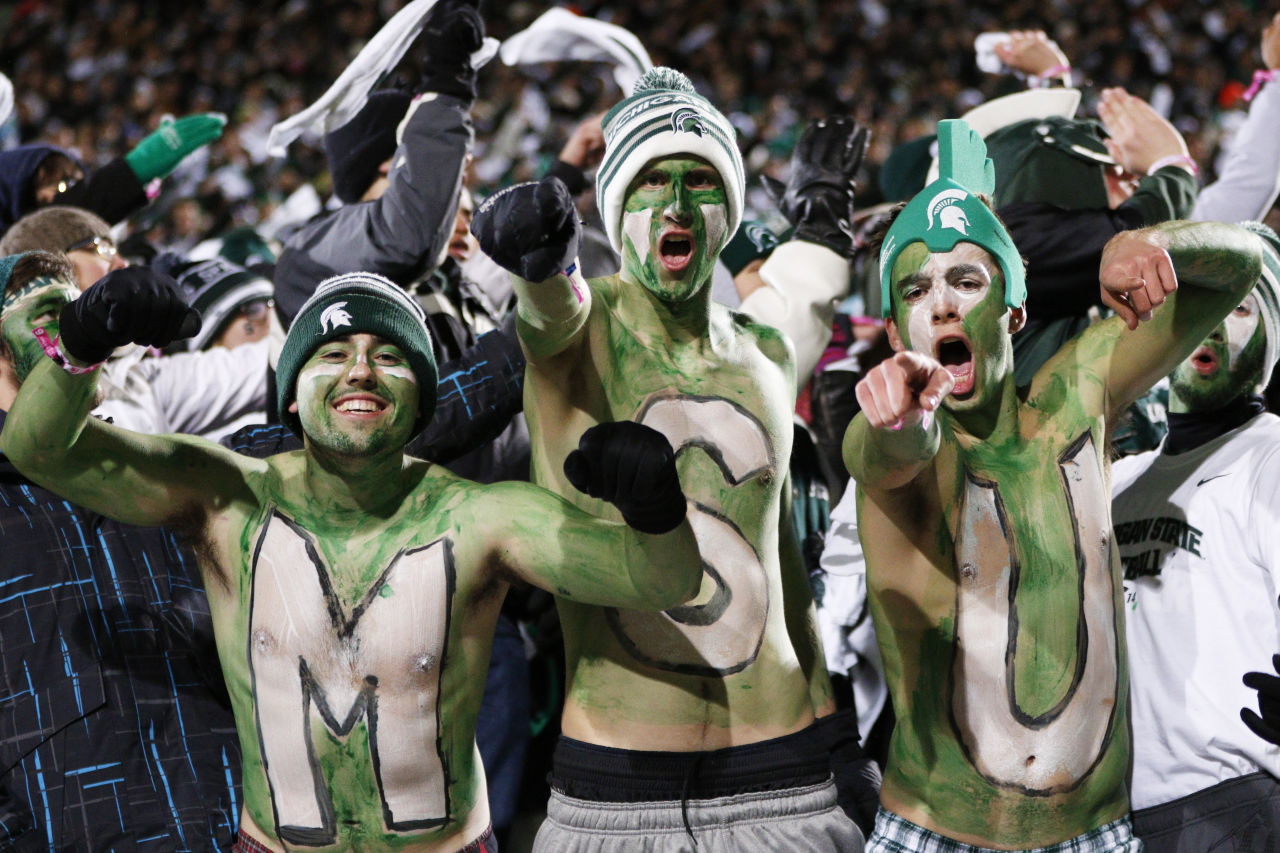 Ohio State v Michigan State November 20, 2015 1280 × 853 Michigan State Spartans Cheerleader & Fanbase Gallery EAST LANSING, MI – NOVEMBER 8: Michigan State Spartans fans get ready for the game against the Ohio State Buckeyes at Spartan Stadium on November 8, 2014 in East Lansing, Michigan. (Photo by Joe Robbins/Getty Images)
