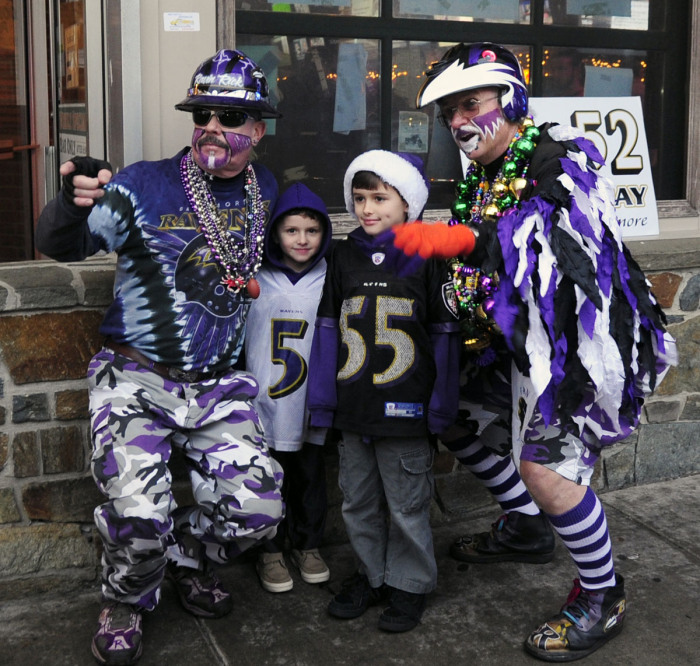 Ravens Rally November 30, 2015 700 × 666 Baltimore Ravens Cheerleader & Fanbase Gallery Fans “Ravin Rick” Dixon, left, and Matt “Fan Man” Andrews, right, pose for a quick photo with young fans Ryan and Dominic Bonitz during Friday night’s Ravens Rally at Looney’s in Bel Air.