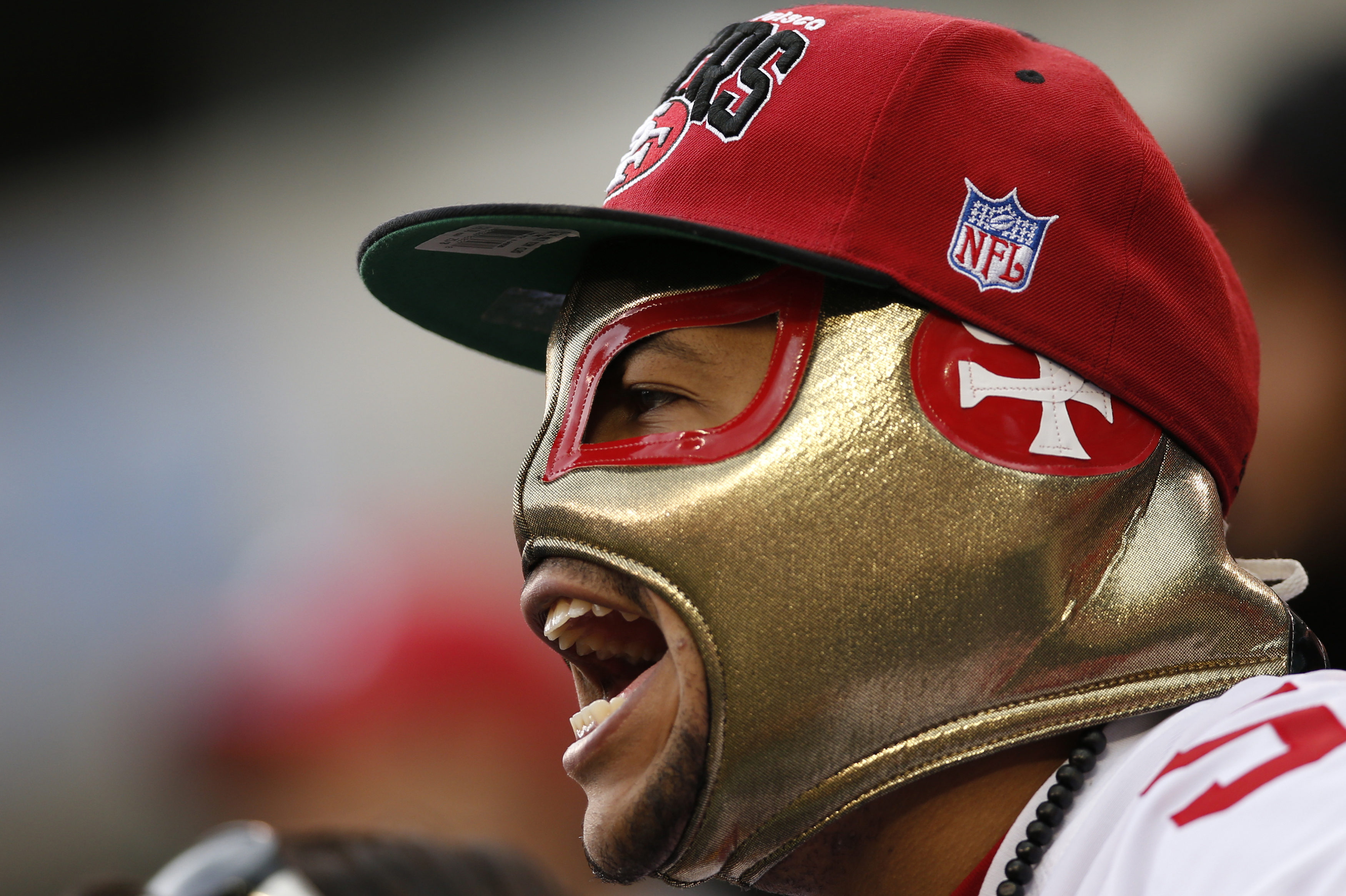 A San Francisco 49ers’ fan screams for his team during the third quarter of their NFL football game against the New York Jets in East Rutherford, New Jersey, September 30, 2012. The 49ers won the game 34-0. REUTERS/Mike Segar (UNITED STATES – Tags: SPORT FOOTBALL) – RTR38MPD