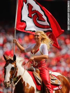 KANSAS CITY, MO – SEPTEMBER 15: Chiefs cheerleader Susie rides Warpaint in between quarters as the Kansas City Chiefs take on the Dallas Cowboys in the /h quarter September 15, 2013 at Arrowhead Stadium in Kansas City, Missouri. (Photo by Kyle Rivas/Getty Images) *** Local Caption *** Warpaint ; Susie