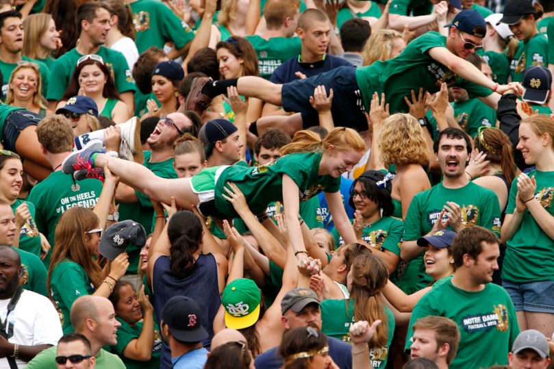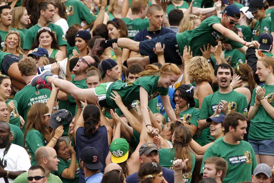 Notre Dame Temple Football January 1, 2016 950 × 633 Notre Dame Fighting Irish Cheerleader & Fanbase Gallery Notre Dame students celebrate a touchdown during an NCAA college football game on Saturday, Aug. 31, 2013, at Notre Dame. SBT Photo/JAMES BROSHER