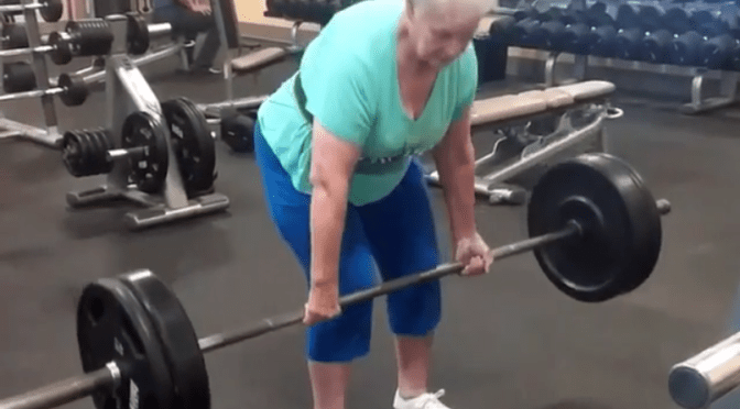 Grandma deadlifts 225 lbs with ease