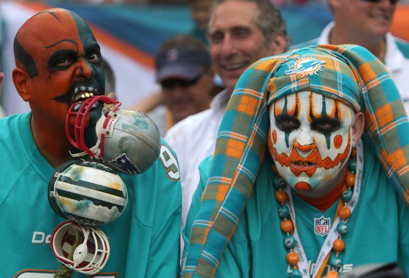 New England Patriots Vs. Miami Dolphins At SunLife Stadium September 25, 2016 4584 × 3117 Miami Dolphins Cheerleader & Fanbase Gallery MIAMI GARDENS, FL – DECEMBER 15: Miami Dolphins fans were dressed for the occasion with painted faces as the New England Patriots take on the Miami Dolphins at SunLife Stadium. (Photo by Barry Chin/The Boston Globe via Getty Images)