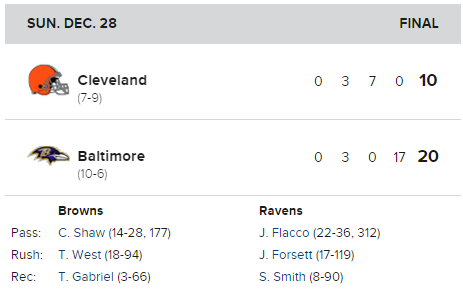 The game went to overtime. The Browns forced the Ravens to punt, got the ball, shoved it down Baltimore’s throat, and set up Travis Coons for a game winning field goal