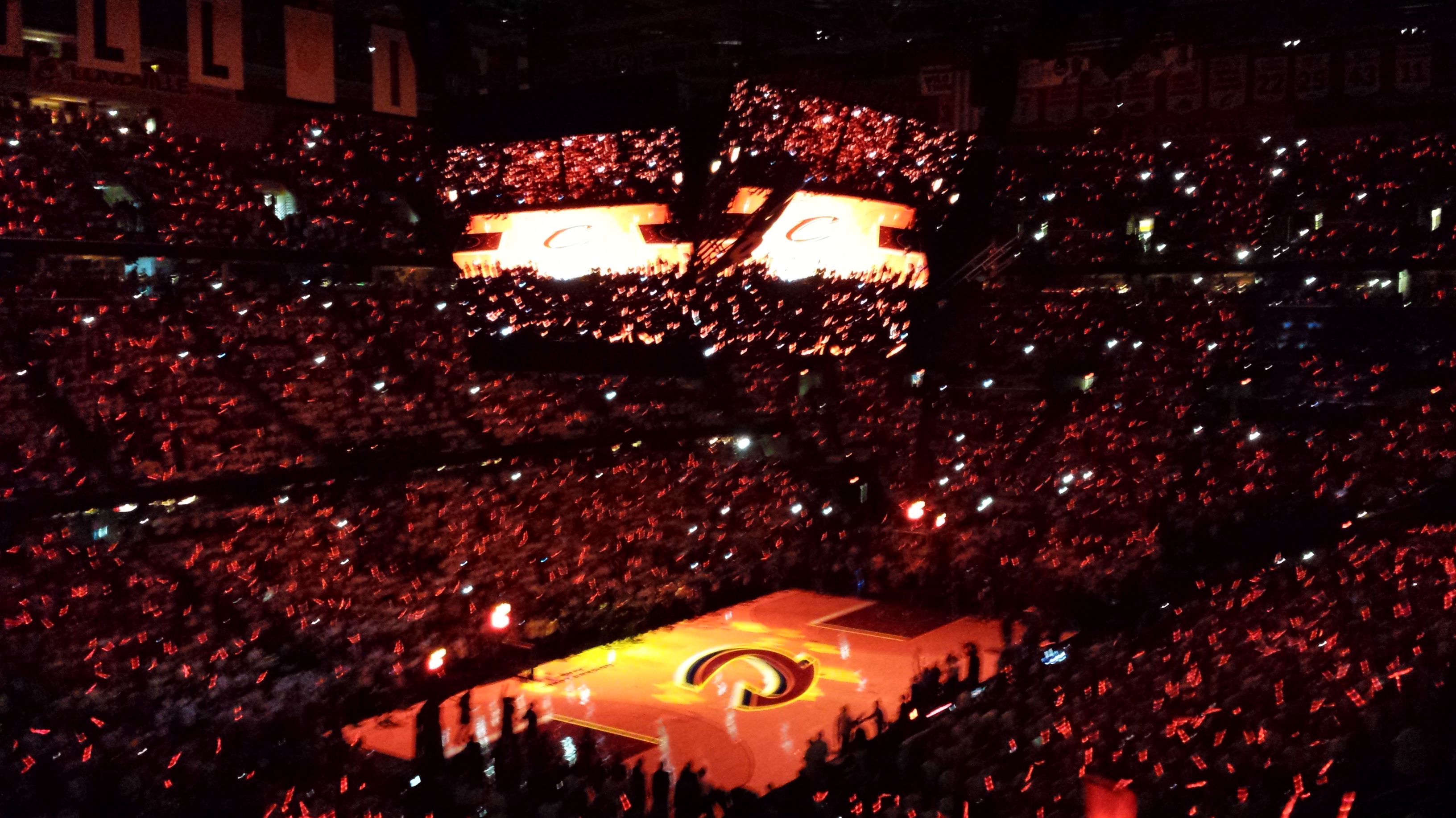 The Q was rocking during pregame intros. I’m a sucker for those light up glow sticks that they hand out