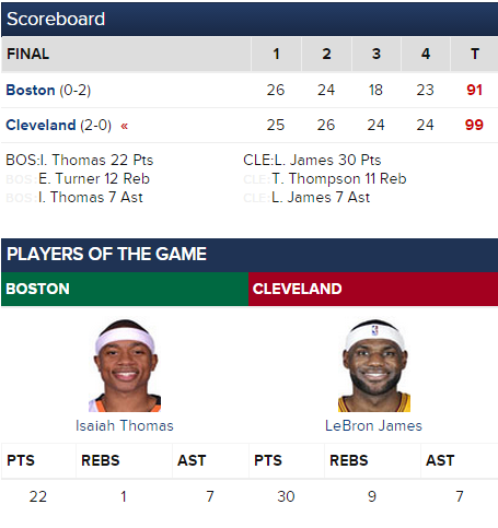 – If I’m Brad Stevens I’m not taking Isaiah Thomas out of the game. I don’t think there’s really any Cavs player on the roster who could do a great job of guarding him. He’s a waterbug.