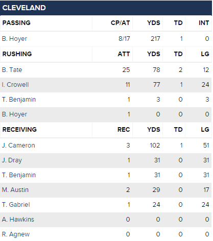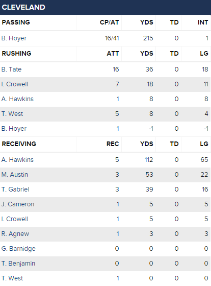 Honest statement: I had NO IDEA what “highlights” to put in here from the Browns side. When a game produces SIX offensive points, your options are limited.