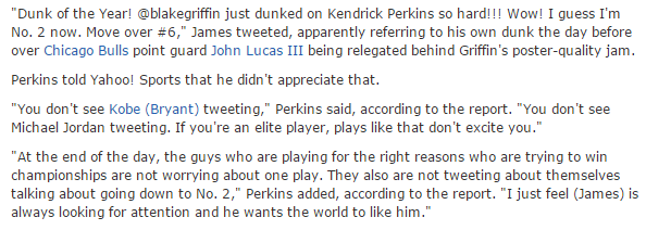 3. If you’re curious as to what Kendrick Perkins is telling LeBron before tipoff, it’s outlined here from Cleveland.com