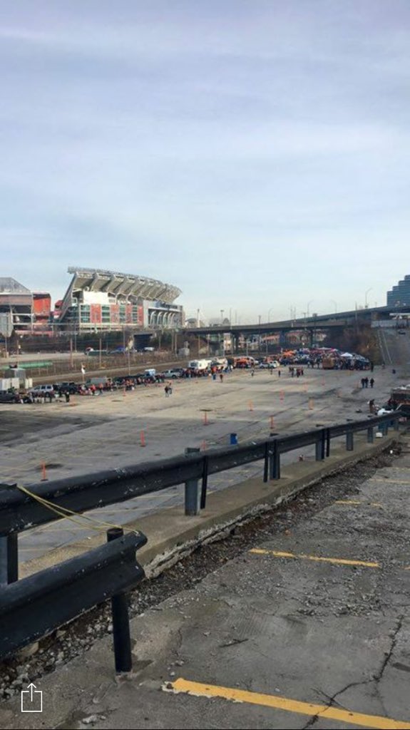 I was in the Muni Lot before Sunday’s game. Upper 40s with sunshine for a late November home game in Cleveland is unheard of… and the Muni was possibly the least crowded I’ve ever seen it in the 10 years that I’ve been going. For every three cars there was an empty space with nothing in it. A few of the usuals weren’t there. The second lot after the toll booth was about 15% full. A once proud and great parking lot reduced to empty spaces and drunk guys willingly jumping into trees in hopes of a branch poking their eyes out so they don’t have to watch the Browns play football. SAD!