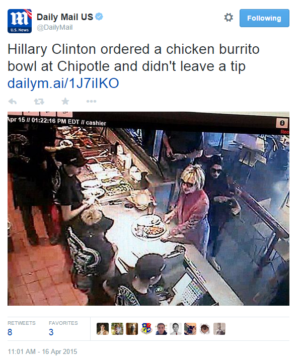 And if there was ever an award for “fishing for a story” the Daily Mail would win hands down. The very definition of clickbait. But that’s neither here nor there. No one cares about that shitty headline. The real question here is if regular people like you and I actually do tip at Chipotle. I’ve probably been to Chipotle hundreds of times in my life (double chicken or double chicken/barbacoa is what real men order) and not once has the thought of tipping even crossed my mind. When I step up to the register I’m more focused on the slim possibility of not getting charged for my double meat burrito instead of worrying about leaving a tip for the nice woman who doled out enough sour cream on my food that would stop a normal man’s heart. Leaving a buck or two in the tip jar is the absolutely last thing on my mind. (Do they even have a tip jar?)