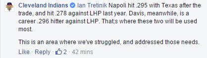 - Given Terry Francona’s traditional reluctance to play young guys over veterans with (perceived) similar talent levels in the past, Tyler Naquin may have been the odd man out of the Indians outfield…five days ago. Abraham Almonte getting popped with an 80-burger for PED use last Friday blew the center field church doors clean off the hinges. All bets are off at this point. Naquin was sniffing the big leagues last season, and probably would have been called up had it not been for an unfortunately-placed outfield wall & subsequent concussion. It’s basically him, Davis, Collin Cowgill and Joey Butler for the center and left field spots (barring a Jose Ramirez sighting in center, which I’m totally for.) You pretty much know what you’re going to get out of the last 3. Most baseball people a whole lot smarter than I am set Naquin’s ceiling at a big league 4th outfielder. That doesn’t sound so bad when there’s so many 5th and 6th’s around him. He’s probably the player I’ll be watching the closest all spring.